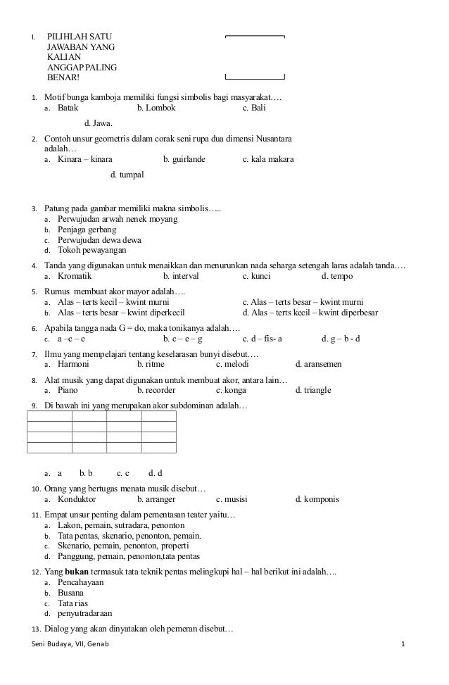 Pilihlah satu jawaban yang kalian anggap paling benar . Sumber Gambar : slideshare.net